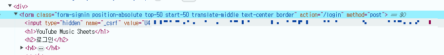 바로 아래 사진의 input 태그 처럼 Spring Security가 CSRF 토큰을 넣었기 때문이다.