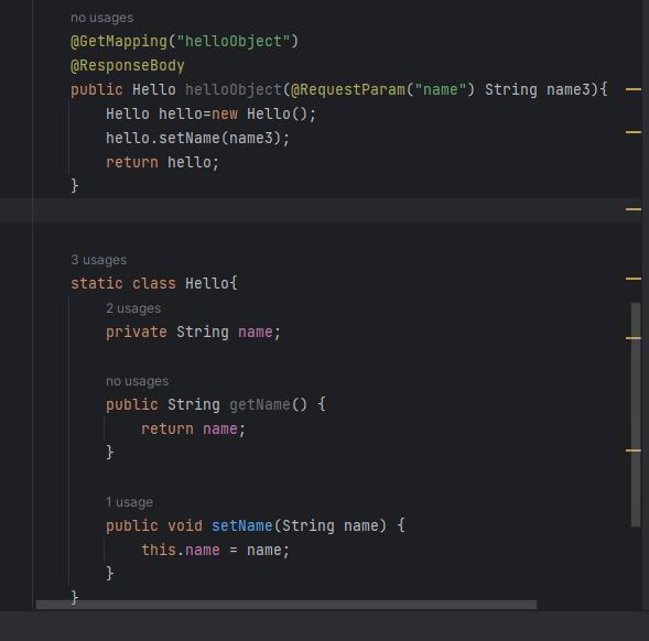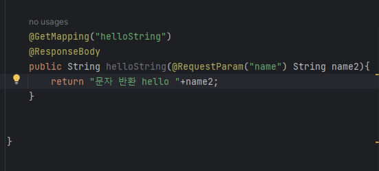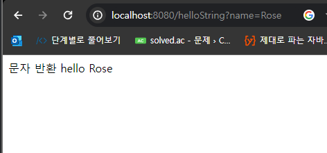 앞에서 설명한 정적 컨텐츠와 mvc와 달리 html을 찾는게 아니라 직접 html body에 반환 내용을 넣어줌
