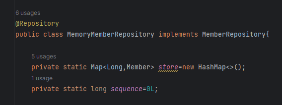 @Component로 작성해도 됨. 위 사진을 보면 @Repository는 @Component를 가지고 있는 것을 알 수 있음