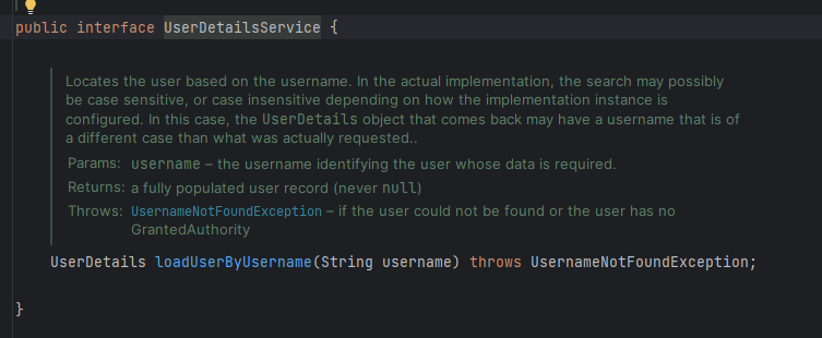 public UserDetails loadUserByUsername(String username) throws UsernameNotFoundException {